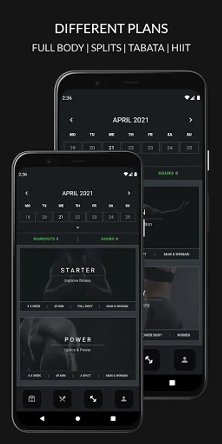 ✓ 7 workout plans full body, splits, Tabata, HIIT