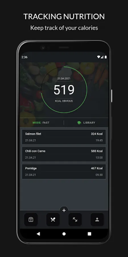 Now you can start losing weight, learn everything you need to know about nutrition and weight loss in the library, track your progress in the weight diary and see how many calories you have left in the calorie counter!