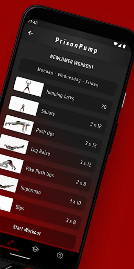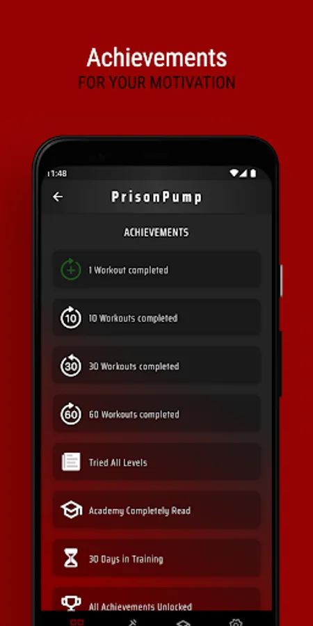 Reach your fitness goals with our unique fitness app PrisonPump that allows you to train like in jail - without equipment! Our app offers 3 flexible workout plans, including 2 full-body plans and a 3-split plan, to optimally shape and strengthen your muscles. With our motivating achievements, you always have a goal in mind and can track your progress. Start your workout now and achieve your fitness goals in record time - easily and comfortably from home.