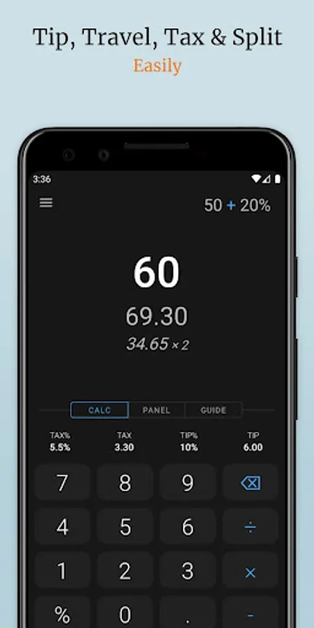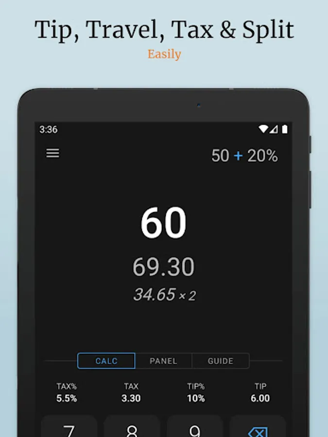 Tax, Tips & Travel is a beautiful and elegantly simple tool for calculating tips, taxes, total bill and splits between friends. The calculator is front and center, which makes it handy enough to replace your daily calculator while being an excellent travel companion!