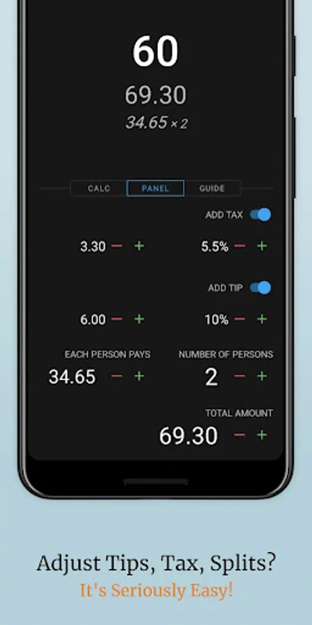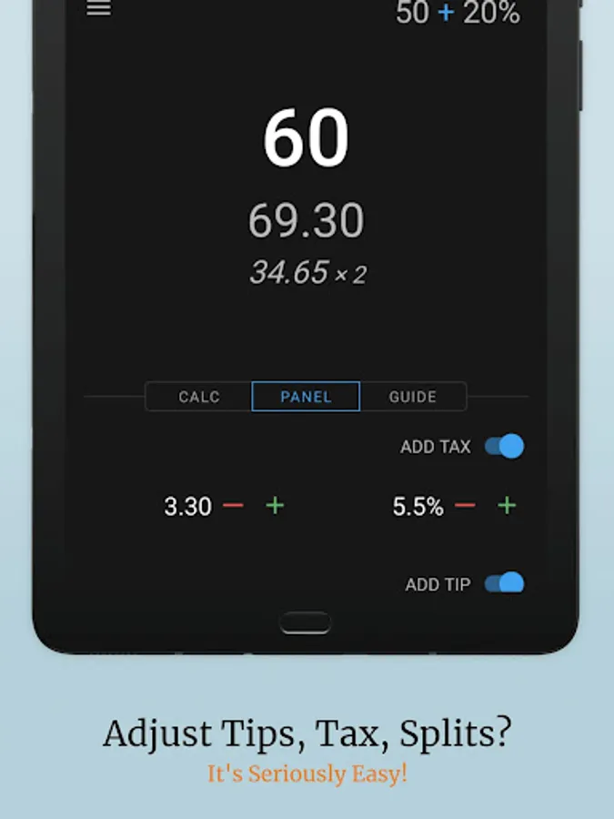 ✔️ Easy controls to make granular adjustments of your tips, splits and more