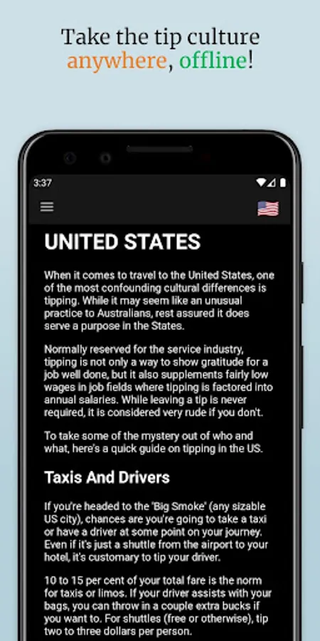 ✔️ Works offline, access your complete travel tipping guide anywhere