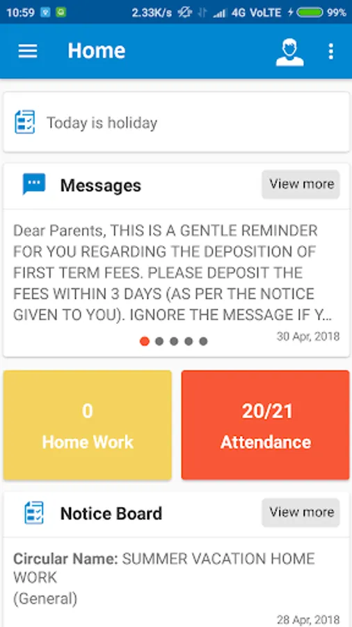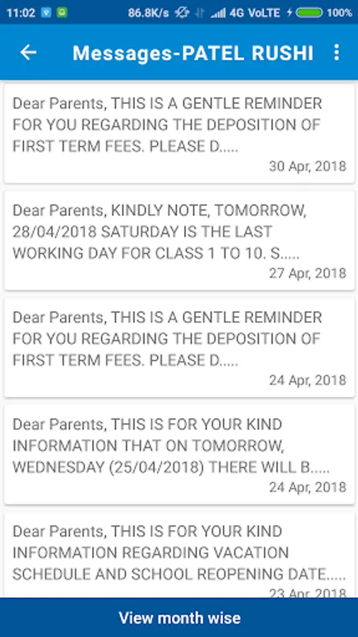 Rose Petal Convent School App is an extension to the online profile of student on an