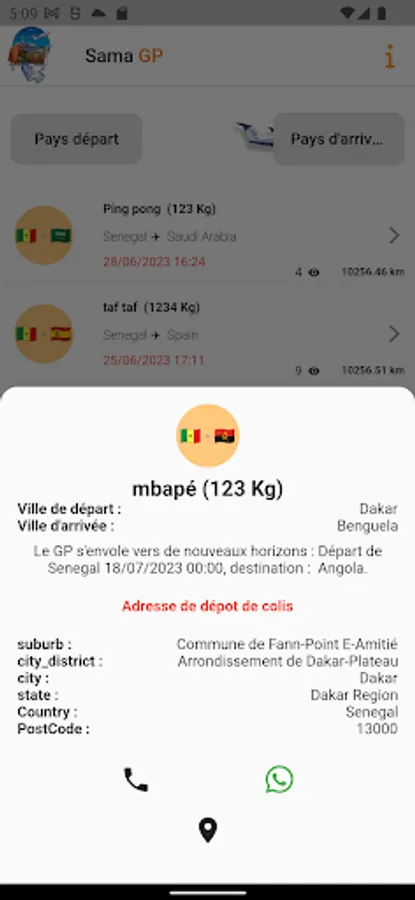 As a user of our GP app, you have access to a full list of available carriers. You can browse the different options according to the countries of departure and arrival, view the details of each carrier and obtain their telephone number to contact them directly. This feature allows you to easily communicate with your chosen carrier, discuss shipment details, rates and any other relevant information.