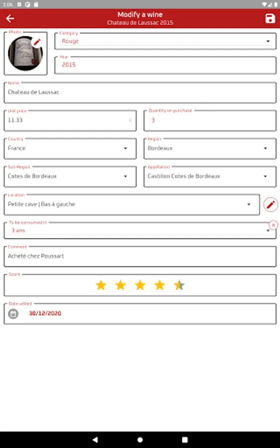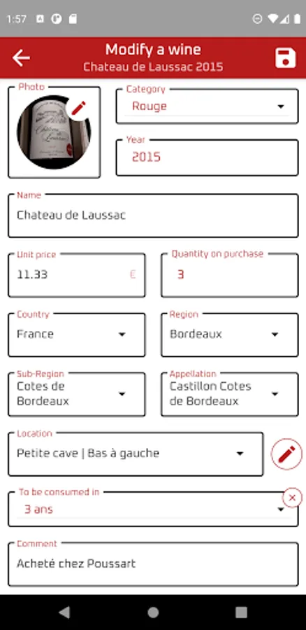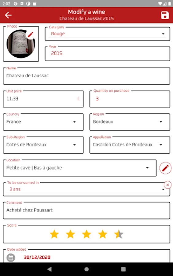 -> Add your bottles of wine by indicating all the necessary information among the following criteria: