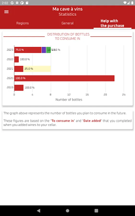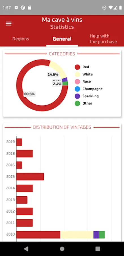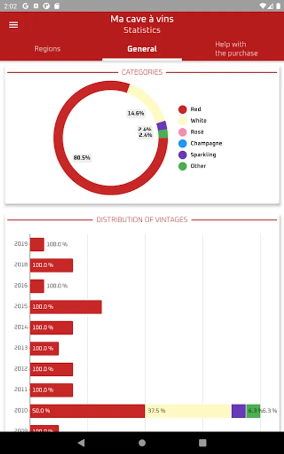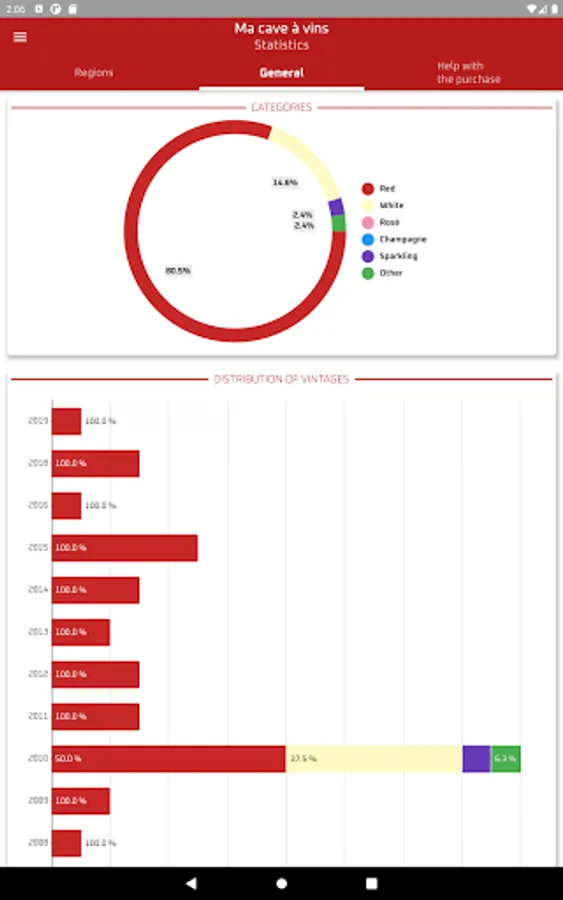 -> Complete statistics to analyze in detail the composition of your cellar and know how to re-supply it