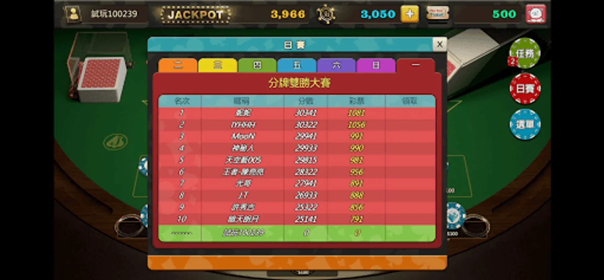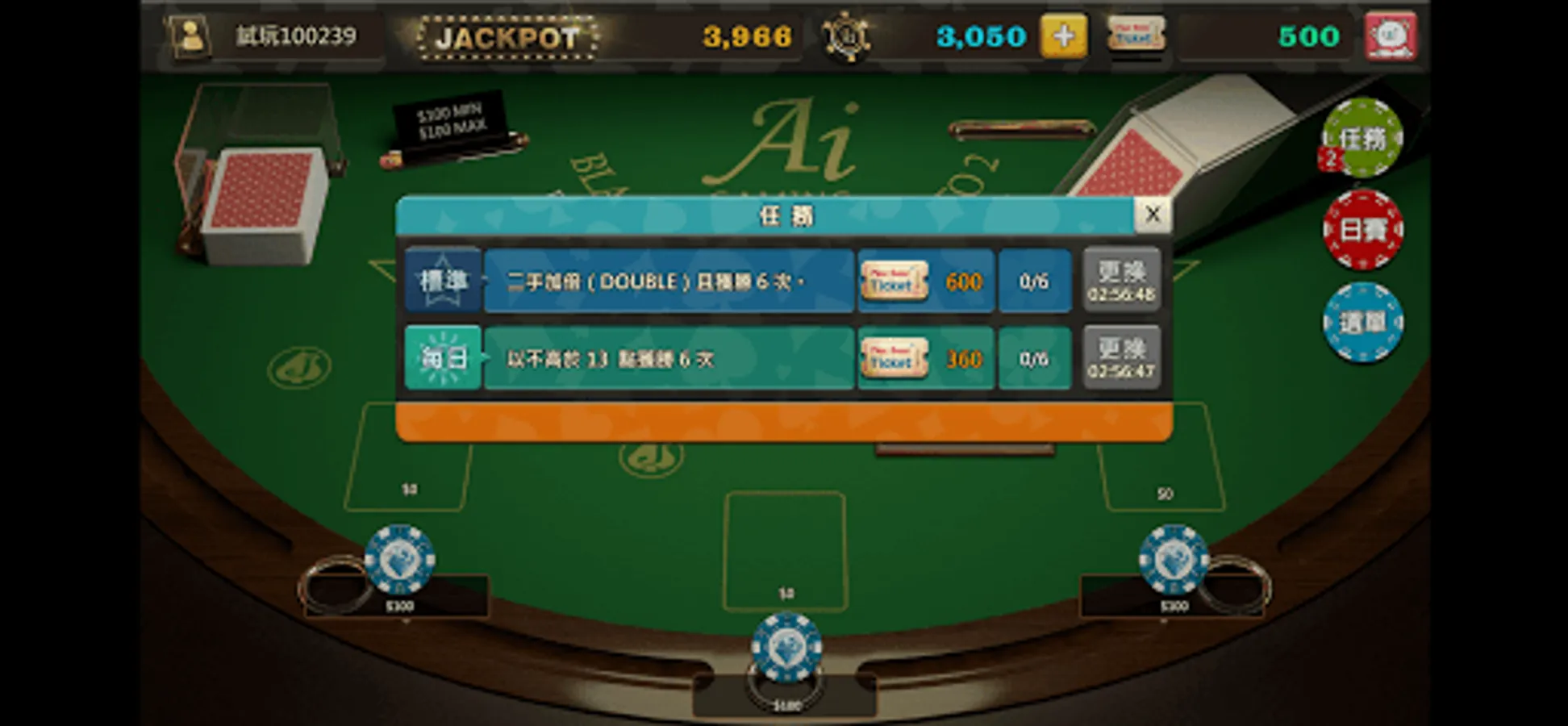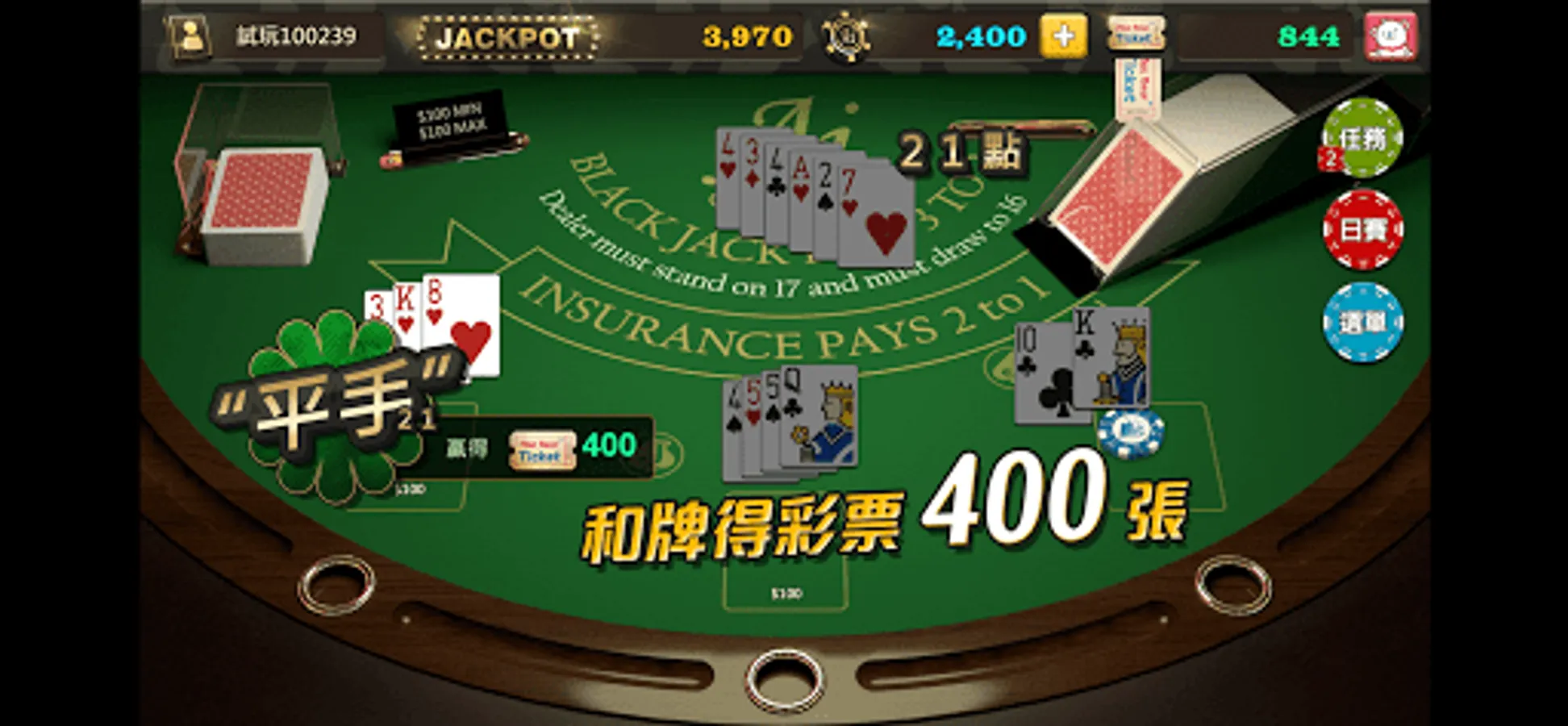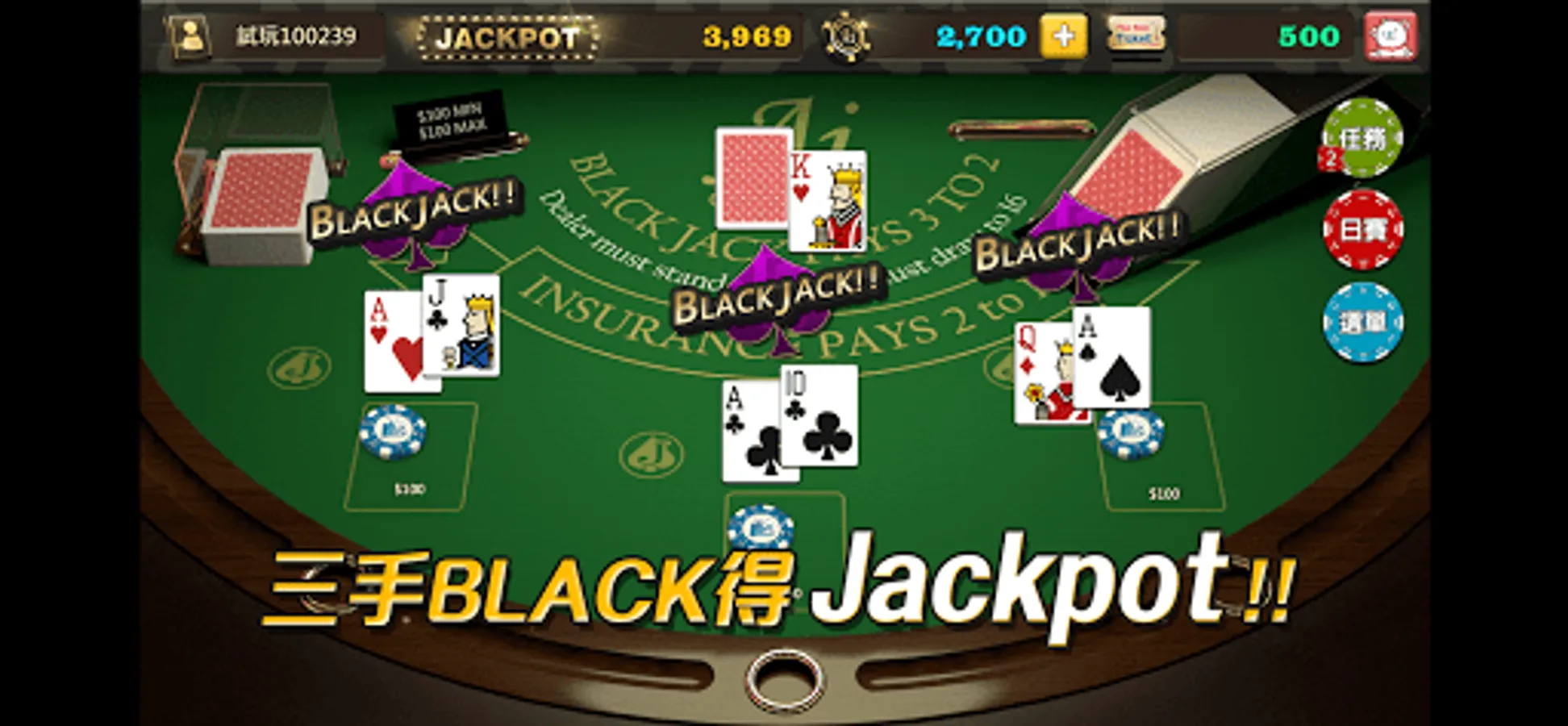 ►Standard Macau Blackjack rules. Bet 3 hands at the same time, and Blackjack wins the Jackpot jackpot with all 3 hands!