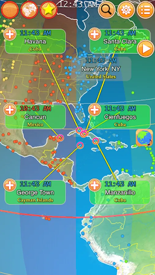 What time is it? Cities around the world use various clock time by timezone. When New York is daylight, but Tokyo is in night. This app show cities on globe-earth and their clocks. Some city-clock will be adjusted in DST (Daylight Saving Time) period.