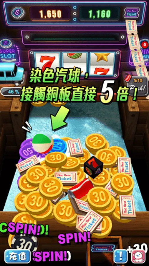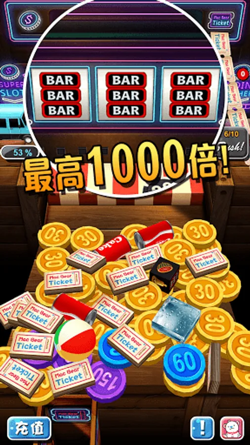 The exclusive technology creates a new benchmark for the coin pushing game, making you feel like you are in a real coin pushing machine playground, Mike Bear Happy World⦗ Lottery Coin Dozer⦘ is playing with you for real!