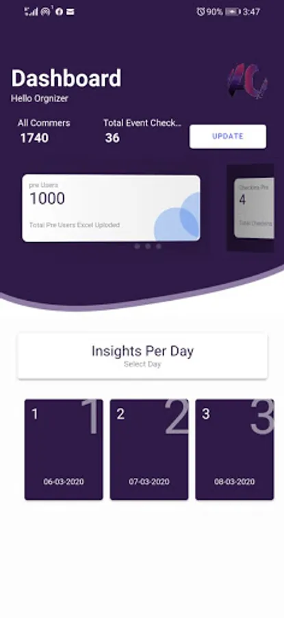 macber dashboard for organizer to manage his event day by day and get all statistics about it