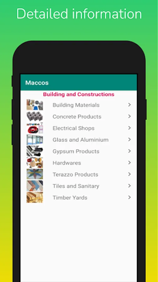 In 'Maccos' the user can find shops of his or her choice in locality area. One can also find shop in any part the country. The user can find the prices of commodities/items sold in the shop and can find display of commodities/items sold in the shop. The details of the shop is provided, such as goods sold, contact person and contact, location, landmark in that place.