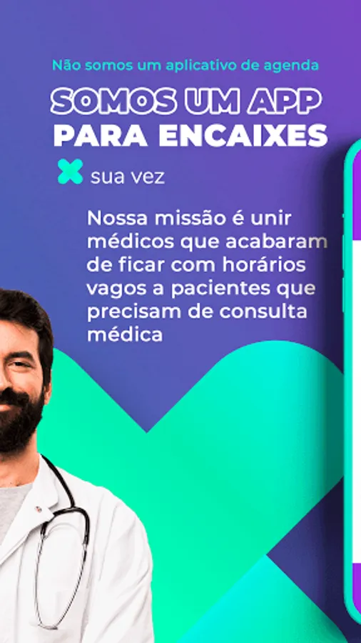 The absenteeism of patients torments medical professionals, generating clinical and financial disorders. In Brazil, the general average of absenteeism is 15% of the appointments and exams scheduled. Despite routines for prior confirmation of consultations, there are still patients who are absent without warning, or worse, confirm and do not appear! In addition to leaving a vacant space in the doctor's agenda, an unmarked time without prior notice, until then, made it impossible for another patient to occupy it. Sua Vez appears on the market to solve exactly this problem. We are not an appointment book app, we are a docking app. The purpose of Sua Vez is to unite doctors who have just had vague schedules to patients who need consultations. The logic of Sua Vez is similar to applications already consolidated in the market, such as Uber, which connect providers to people who need services, in the case of Sua Vez, doctors and patients. Our application replaces the well-known ‘fitting schedule’ with a computerized system that informs you, in real time, that a place has been opened in your schedule, triggering an alert to all patients who have requested a possible fit. All you have to do is make your secretary two clicks informing you that the vacancy is available and the rest will stay with us. If a patient is available you will know in seconds and the vacancy will be automatically filled, sending the patient the route and the estimated time of arrival. No more wasting time and money on patients' absences, Your Time has come because having a full schedule is not enough, patients need to attend.