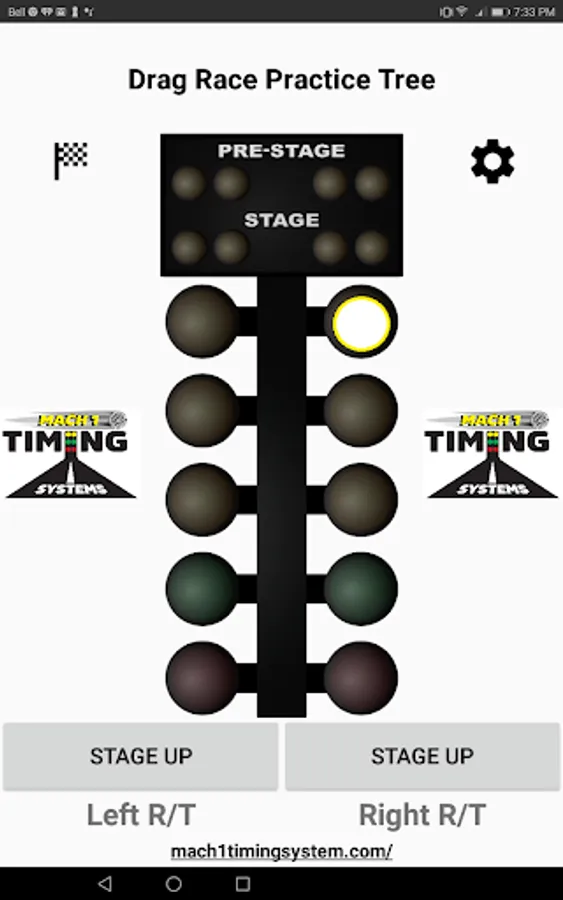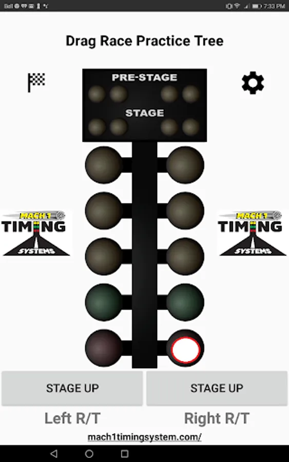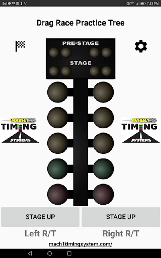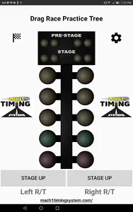 Press Stage button to start the tree. When the last amber flashes press the Go button. If you press before the amber sequence ends, you RED light and DQ. If you press it after the amber GREEN will result. You reaction time is displayed.