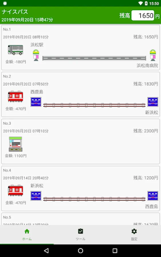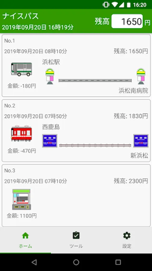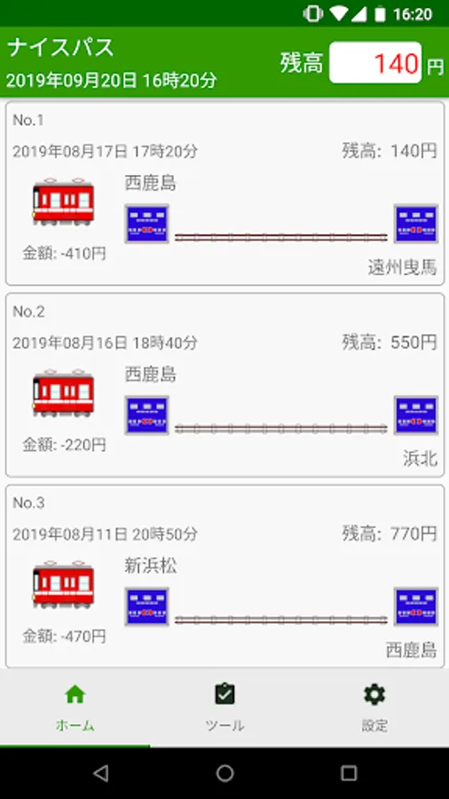 浜松市の遠州鉄道のnicepassの利用履歴を表示するアプリケーションです。(非公式)
