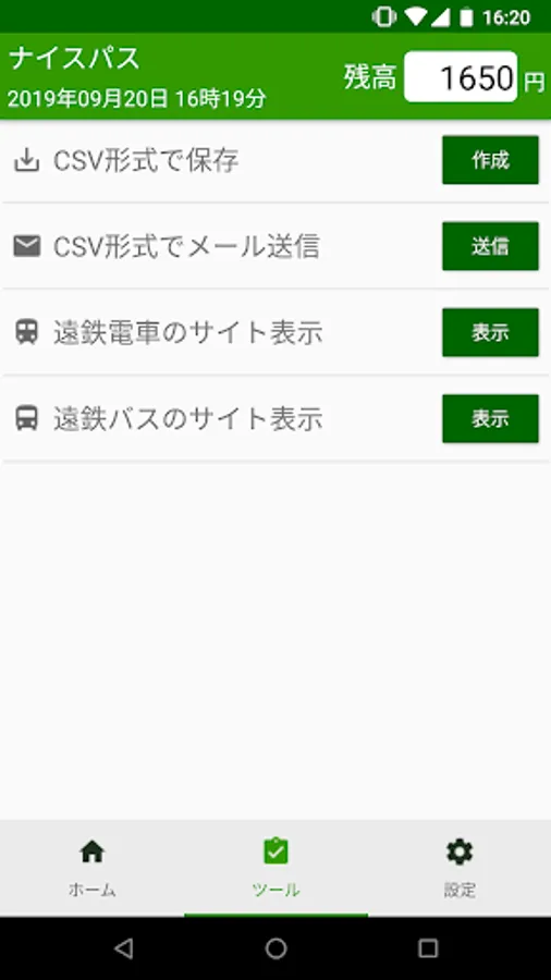 遠鉄電車/遠鉄バスの利用履歴を最大20件表示します。