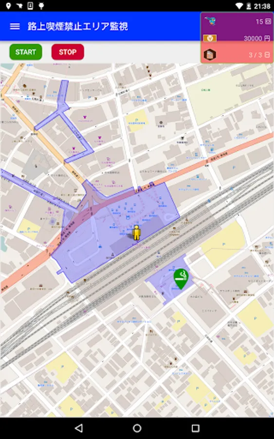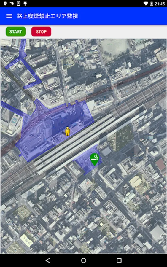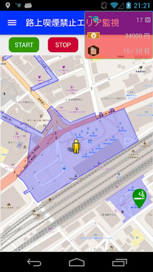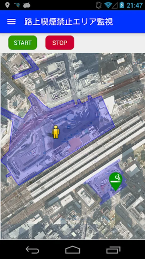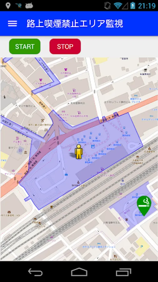 ・背景色で路上喫煙禁止エリア内外を表示します。