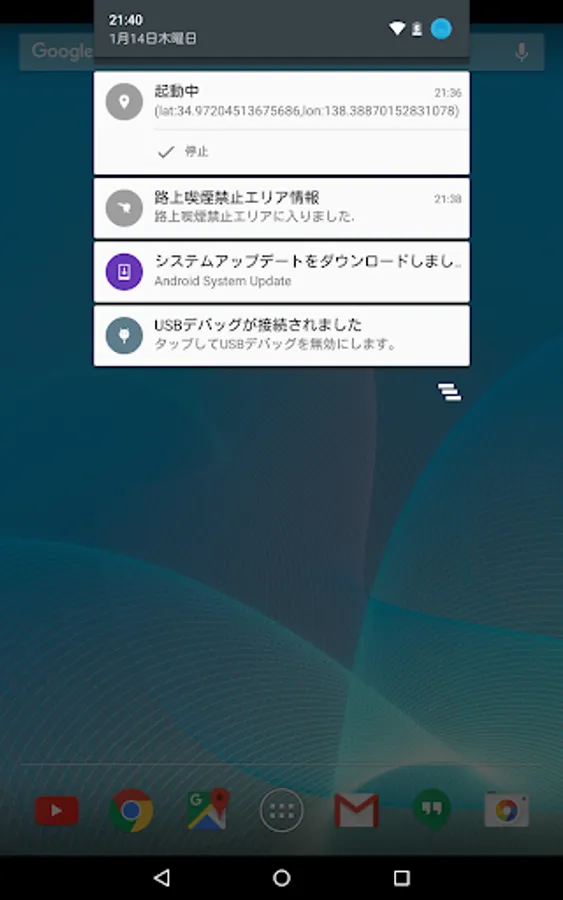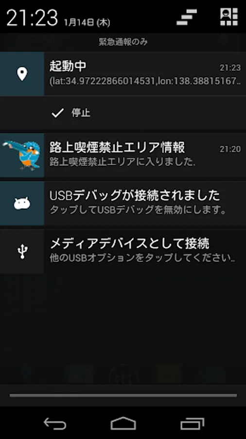 同時に通知エリアに通知、バイブレーションでお知らせします。