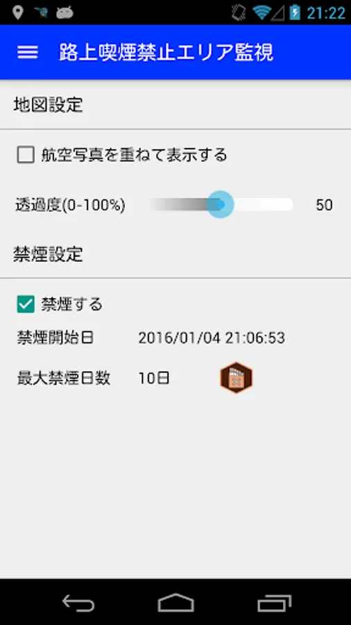 ・設定画面の"禁煙する"のチェックをONにしてください。