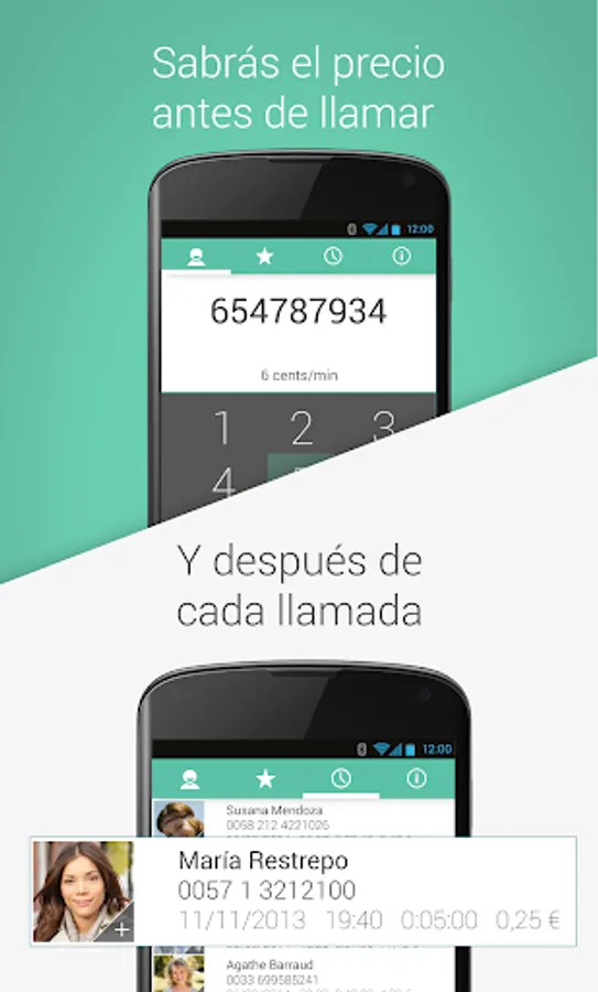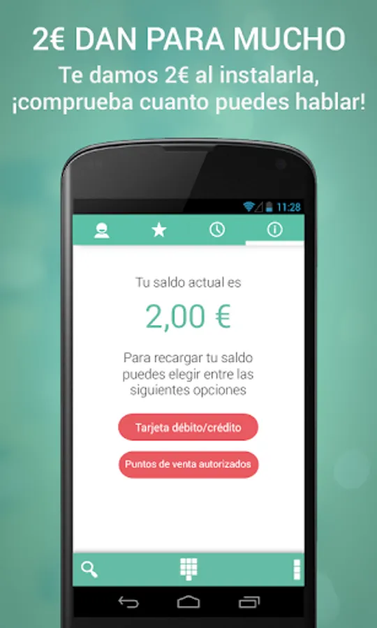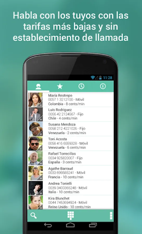 We offer you incredible rates. No call establishment, no maintenance costs and without spending the megabytes or minutes of your rate. And we give you € 2 when you download it so you can check it yourself.