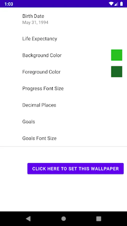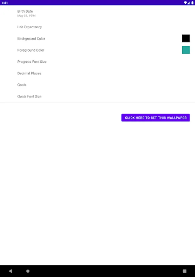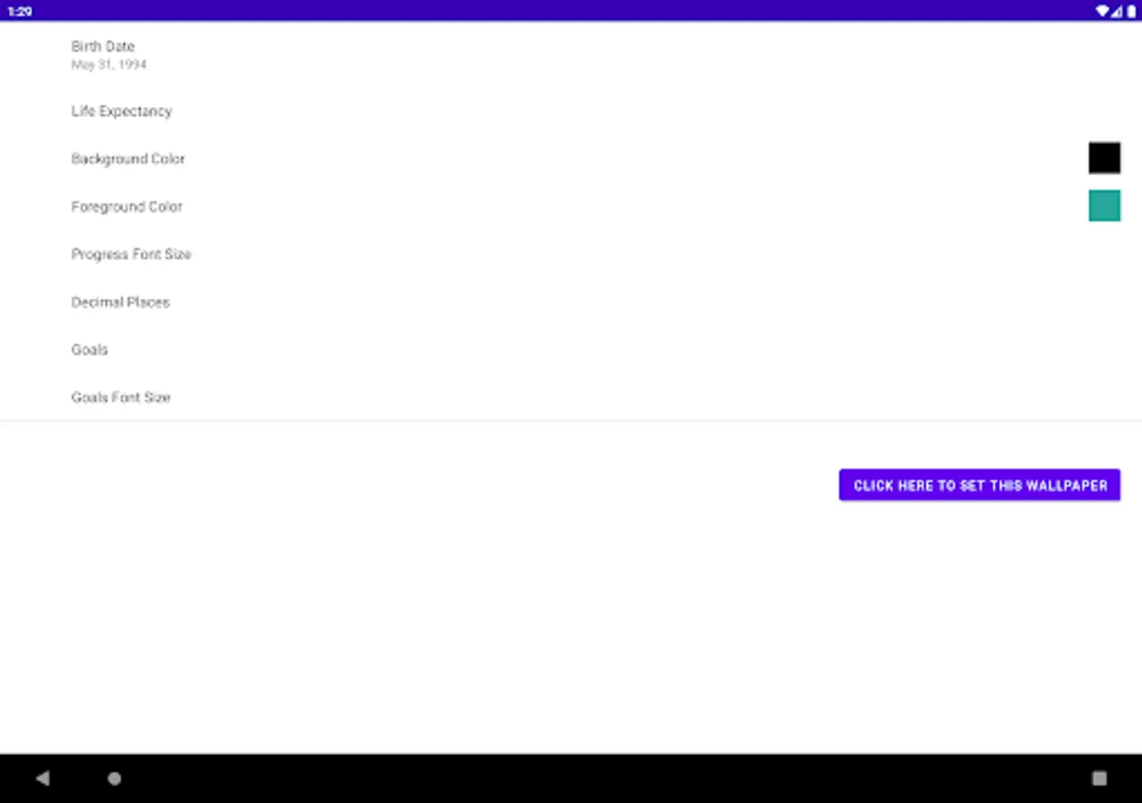 This app is a live wallpaper which displays the percentage of your life that has already gone by. In addition to giving you the actual numbers, it also provides a visual depiction of your time by filling that same percentage of your screen.