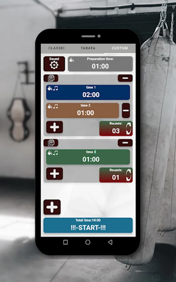 - setting up prepare time, work and rest time, cycles, as wel as you can set up your own cutsom timer
