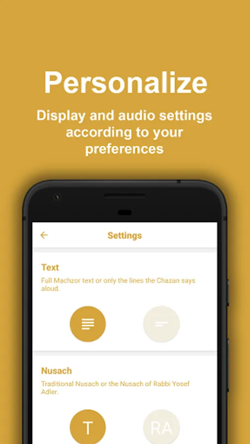 • Two different Nusach’s to choose from: The traditional Nusach and cantorial Nusach.