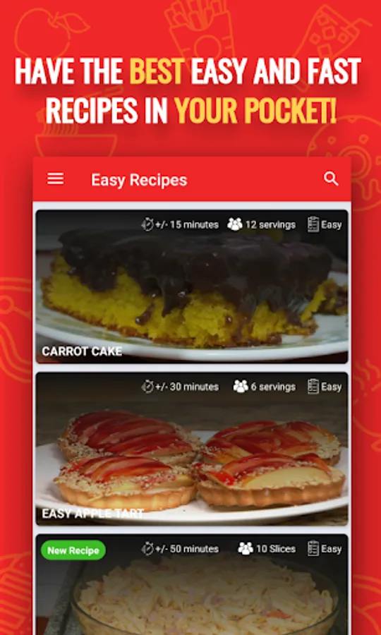 What are you waiting for to download the Easy Recipes app Simple Easy and Quick Recipes and be able to enjoy countless easy and fast food recipes that will help you save time and be able to enjoy more free moments during your daily life.