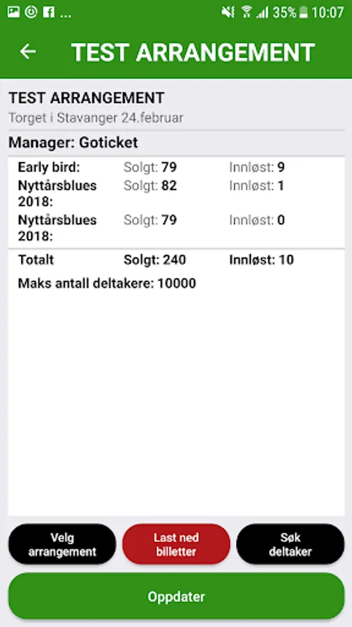 • Den viser tydelig om billetten er gyldig eller ikke, og den viser billettkategori (f.eks. VIP eller Standard billett)
