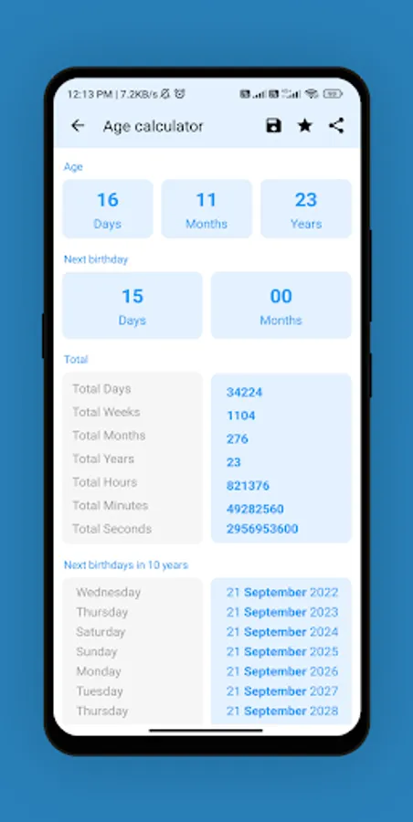 An age calculator is a tool used to determine a person's age based on the date of birth. It is a simple and convenient way to find out one's age, without having to perform manual calculations. The user is required to input their date of birth and the calculator will automatically determine their age in years, months, and days. The age calculator can be used for a variety of purposes such as calculating the age of a person for a job application, determining eligibility for certain services or benefits, or for personal reasons such as planning for retirement or anniversaries.