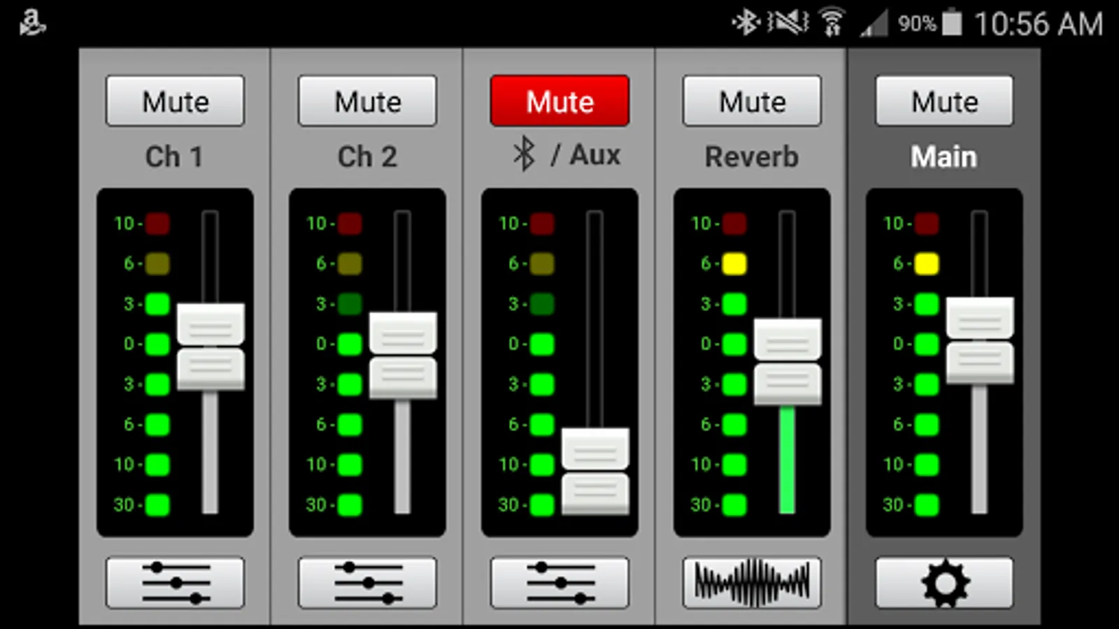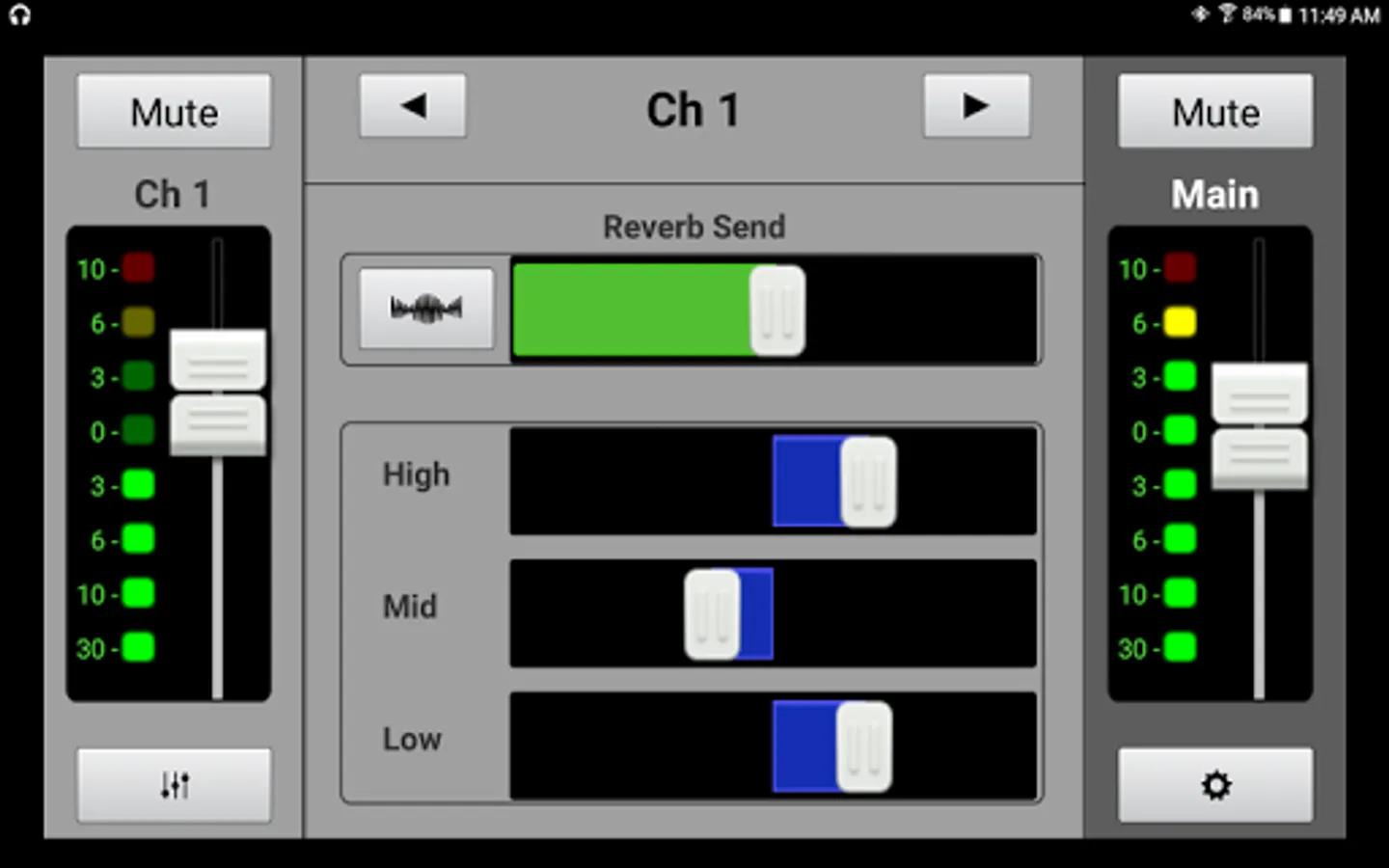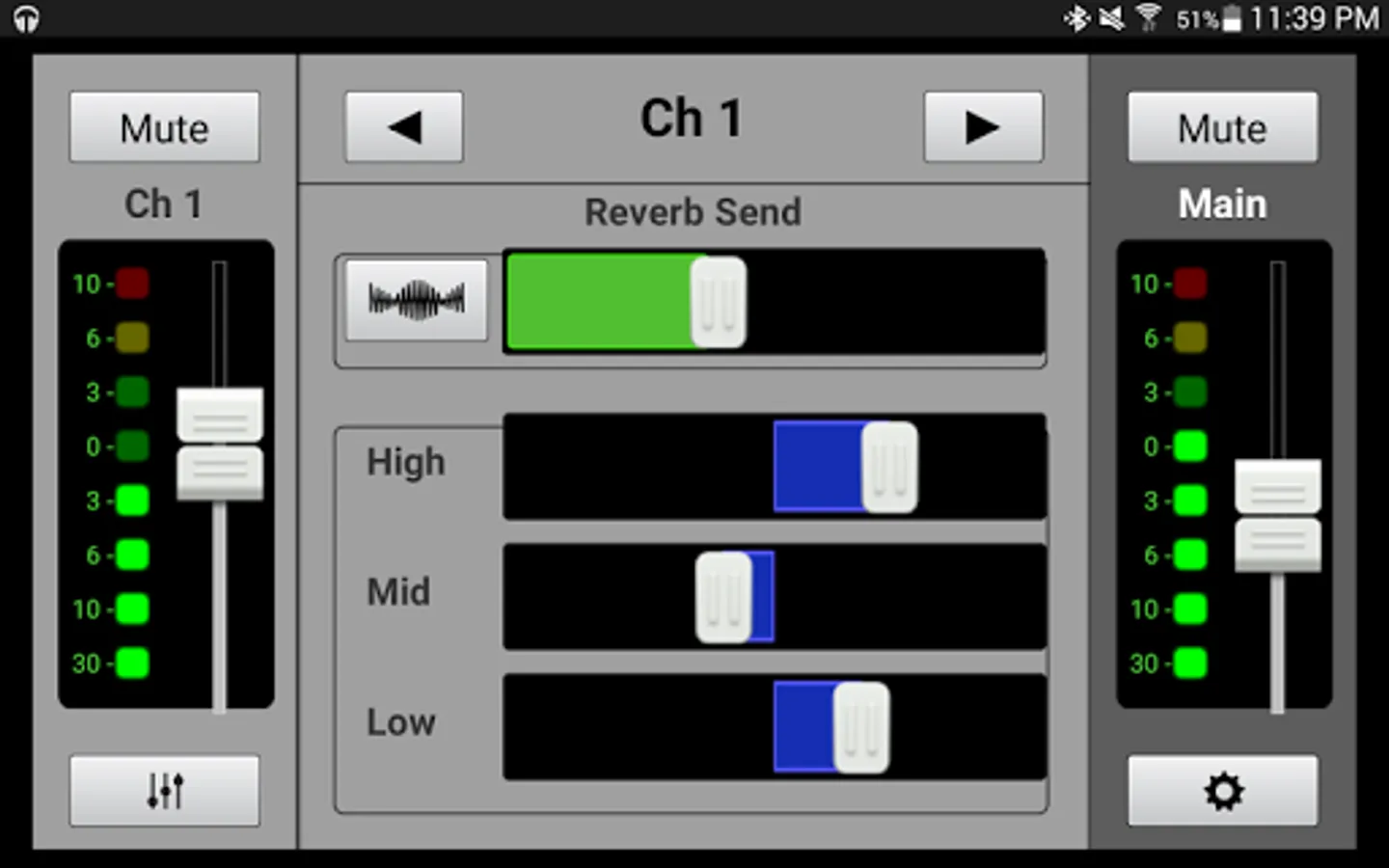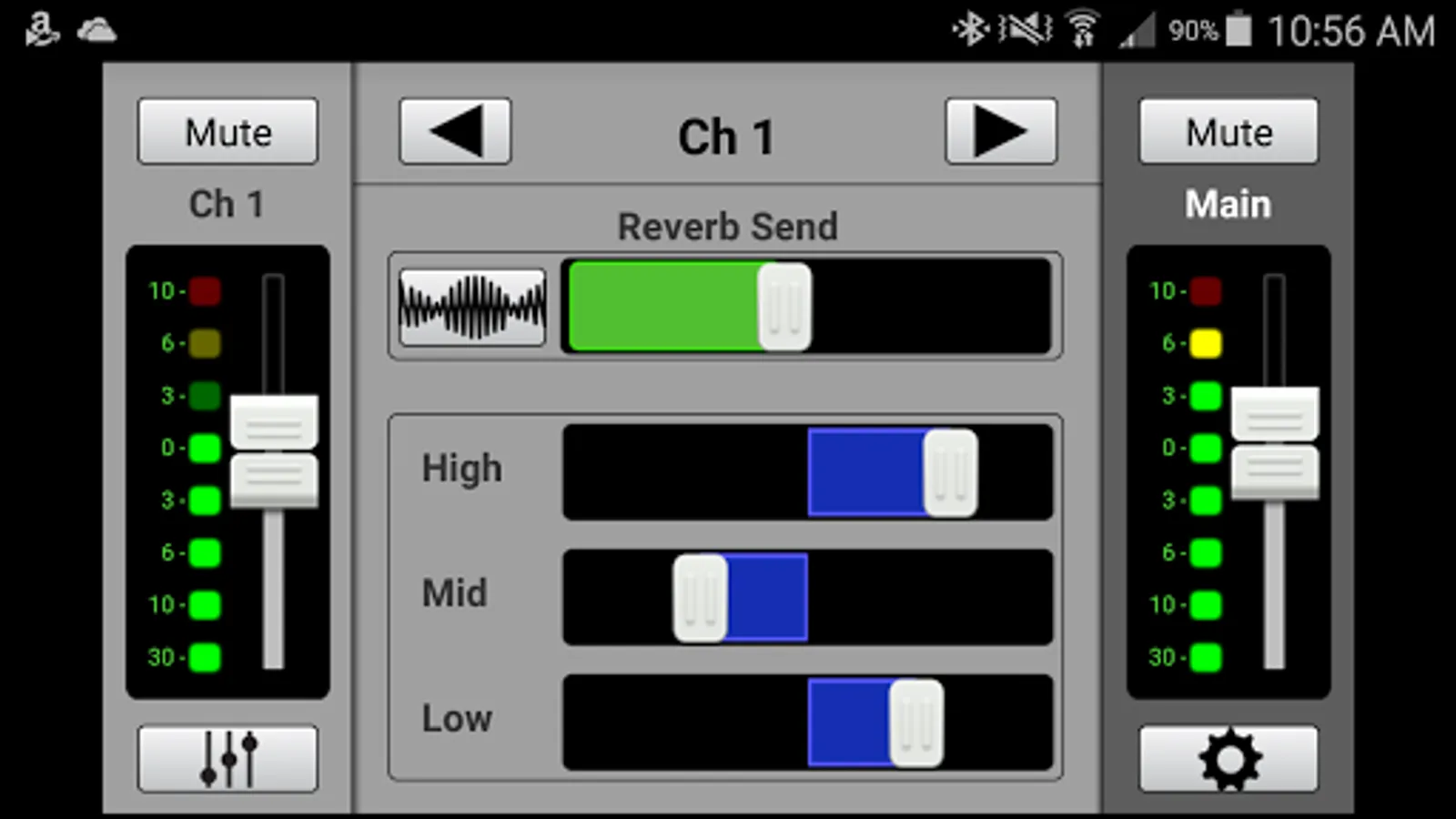 * Channel view gives control over 3-band EQ and FX send level