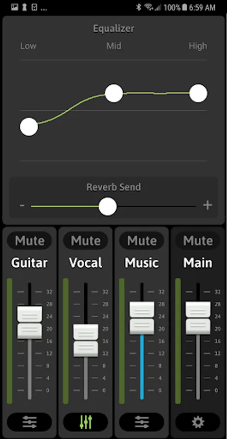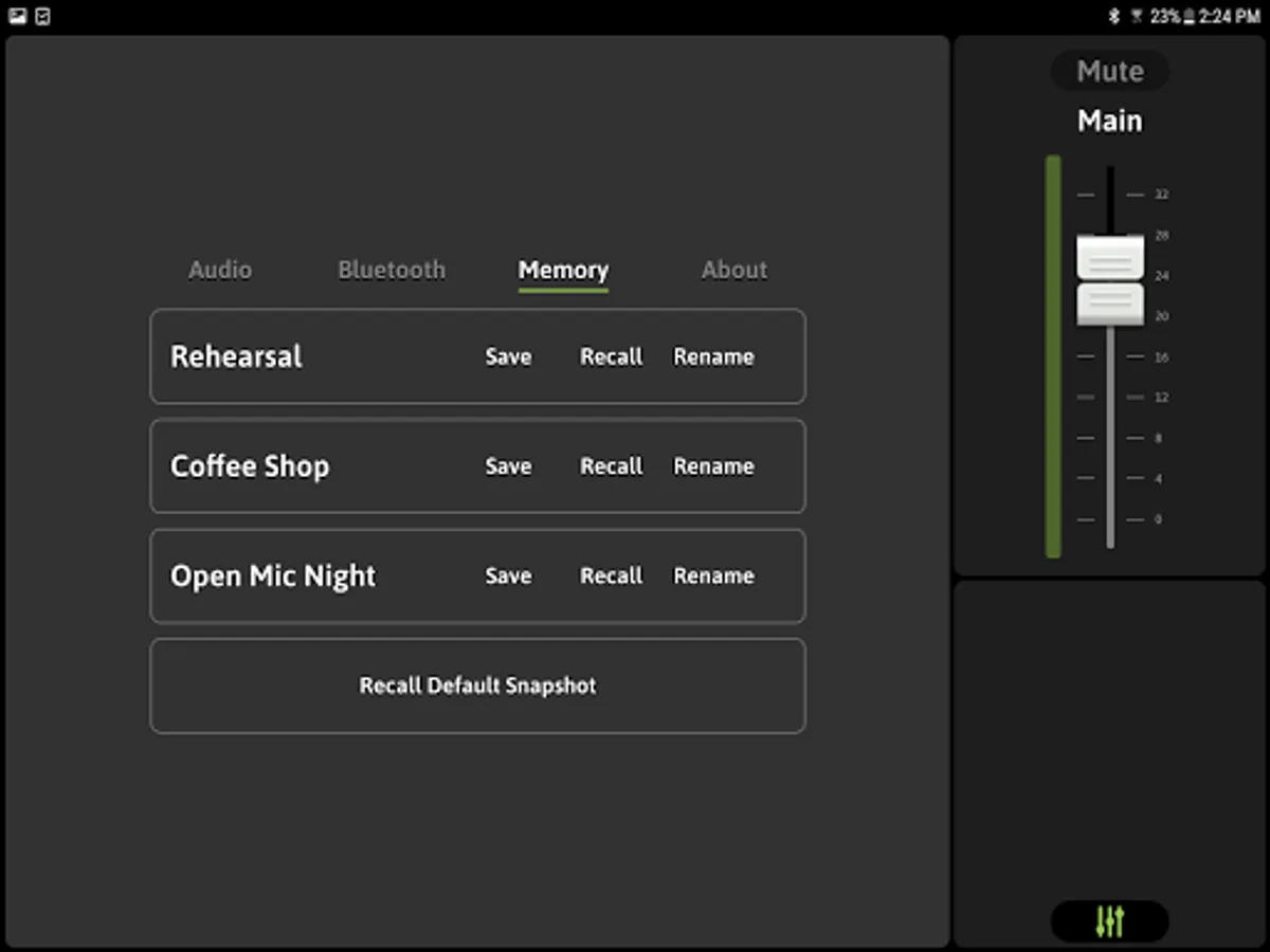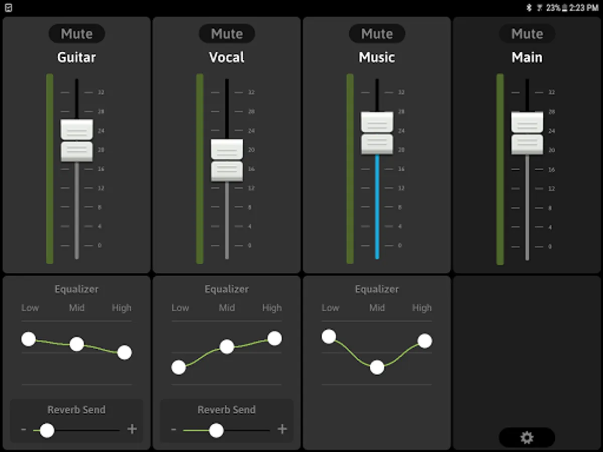 * Adjust channel levels, channel EQ, reverb, master volume, mix presets, and speaker modes for FreePlay Live