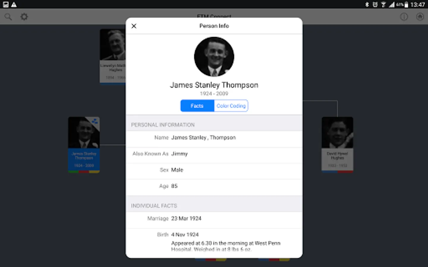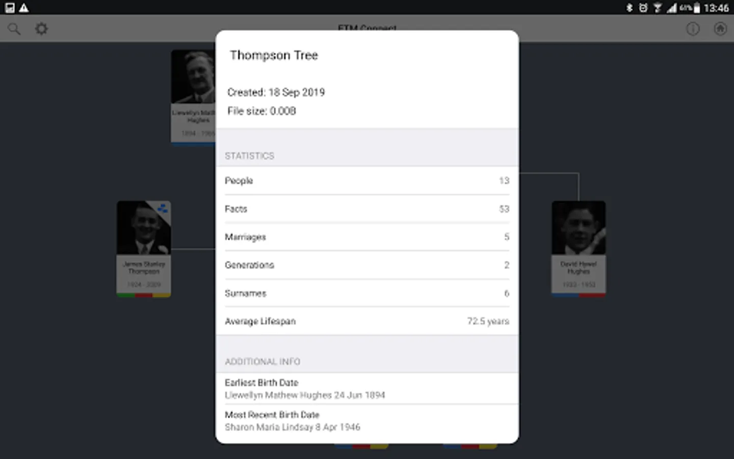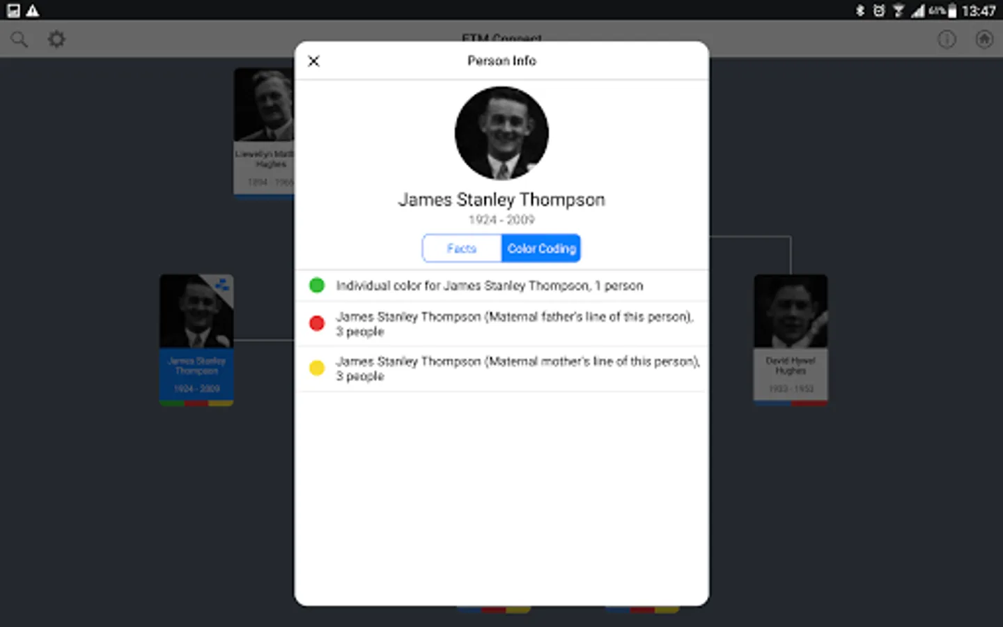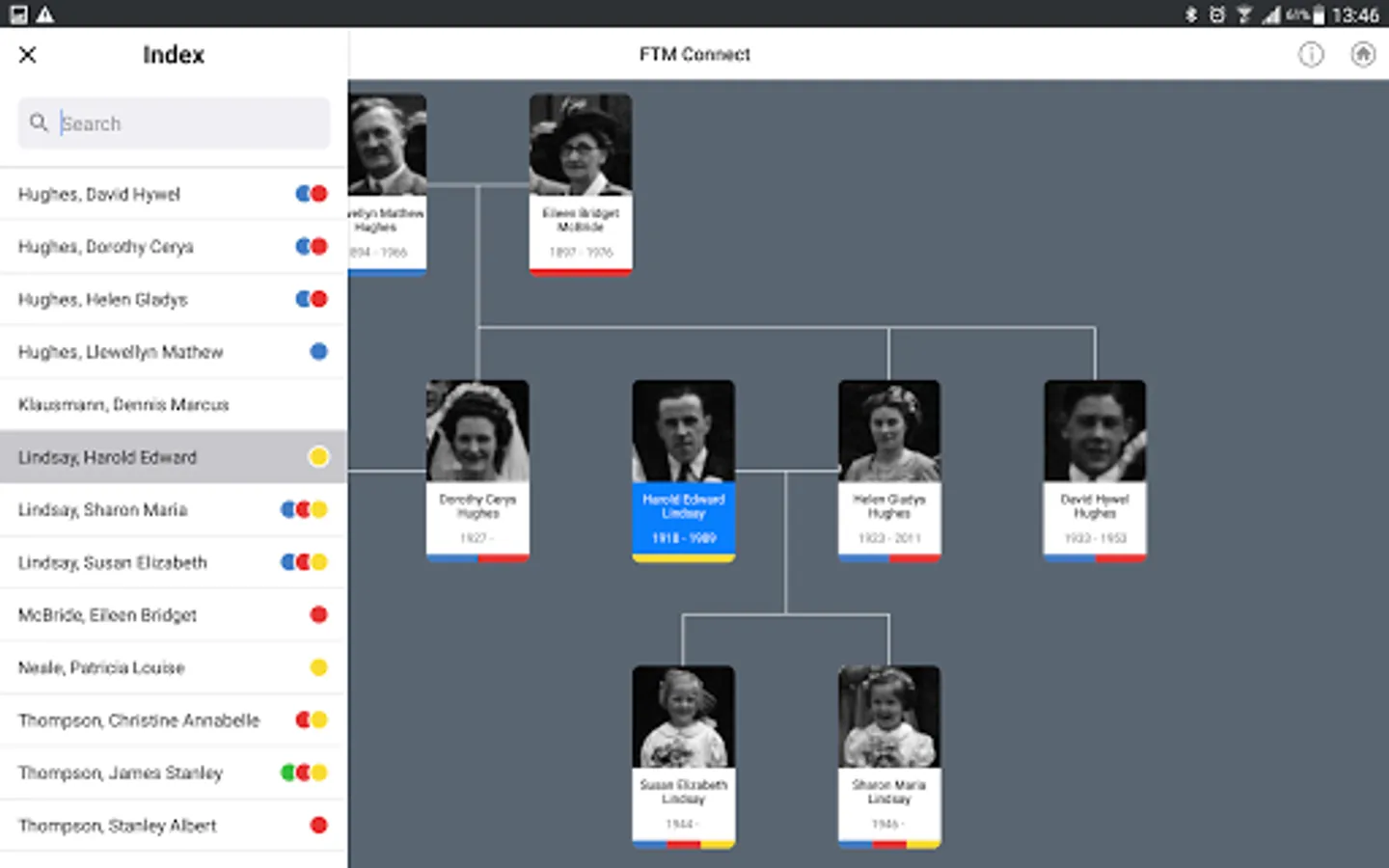 Family Tree Maker Connect (FTM Connect) is a companion app to Family Tree Maker desktop genealogy software that enables the user to view their family tree on their Android device.