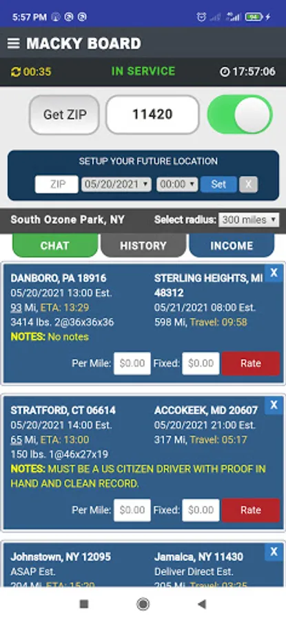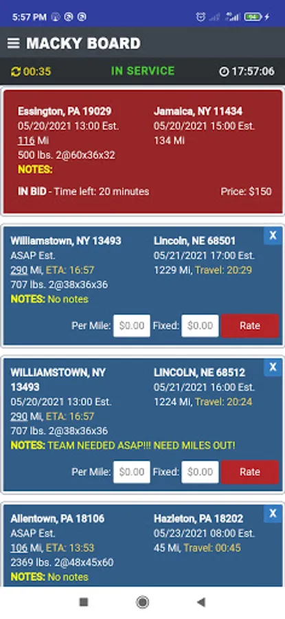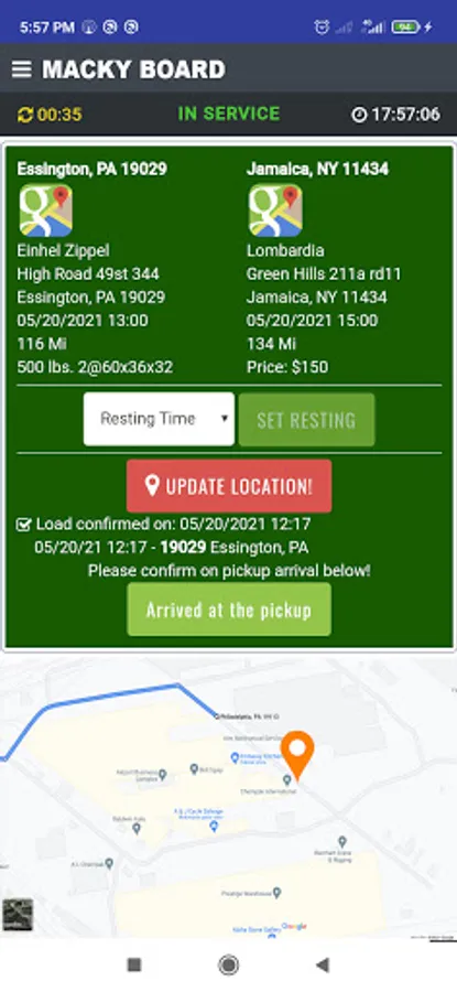 This app (Macky Board) allows truck drivers to select an offer from a currently available list of driving offers based on the driver’s current location.