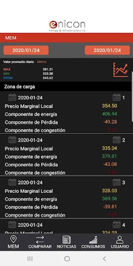 Application to know the wholesale, historical and current electricity market.