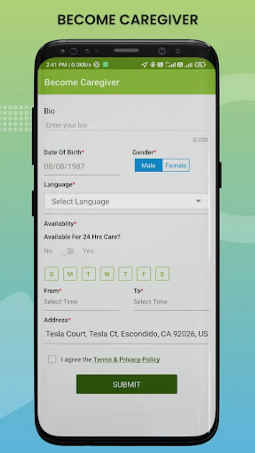 - Filter caregivers by availability, language, and gender