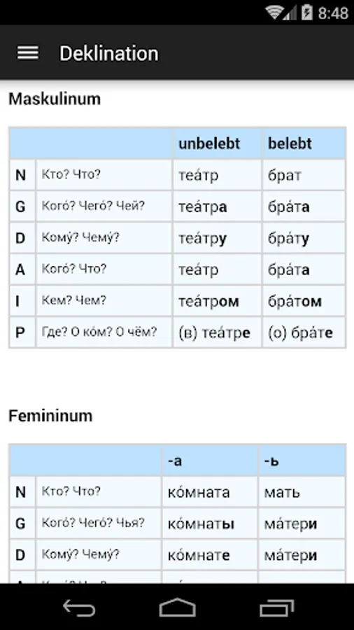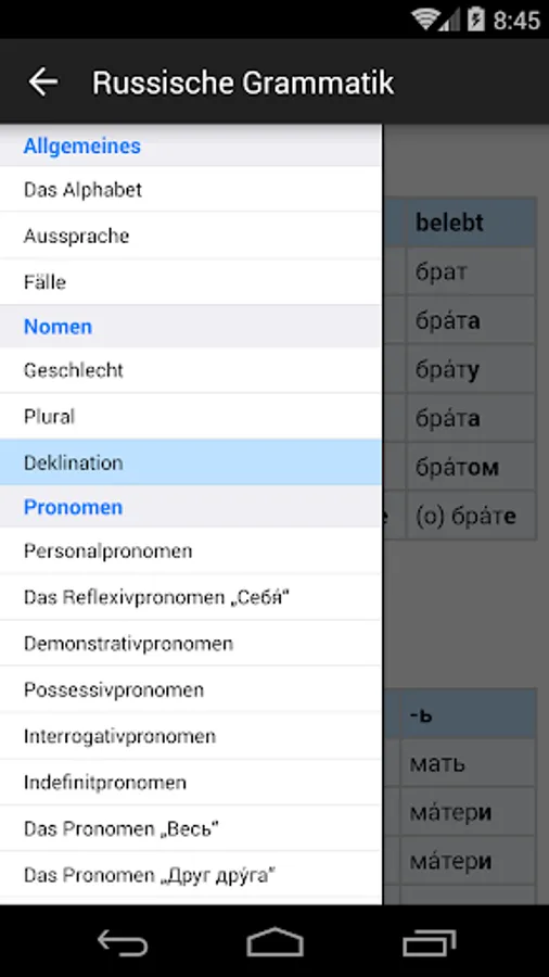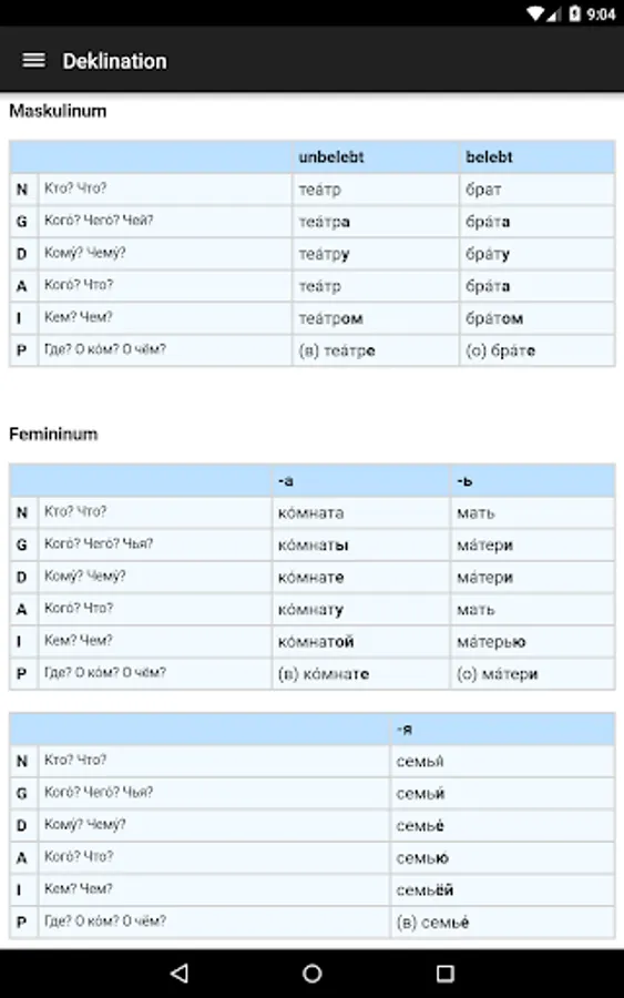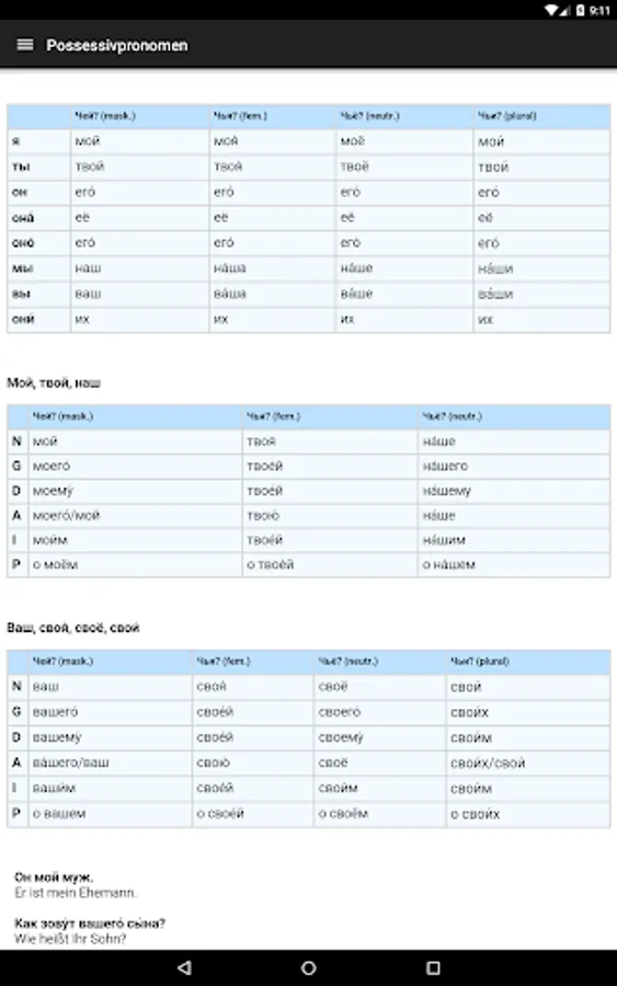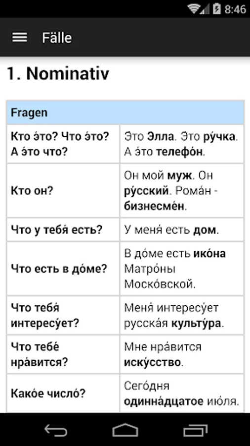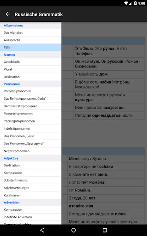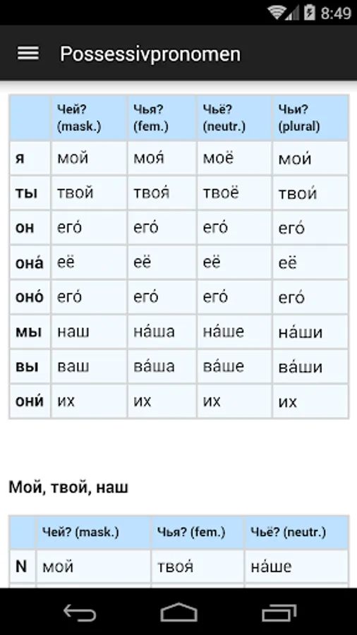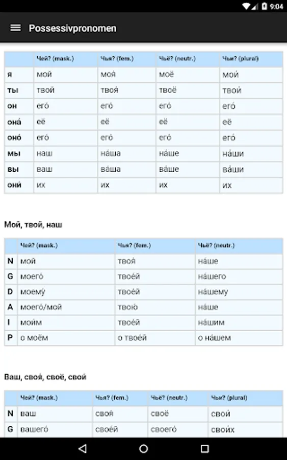 Quick look at the Russian base grammar