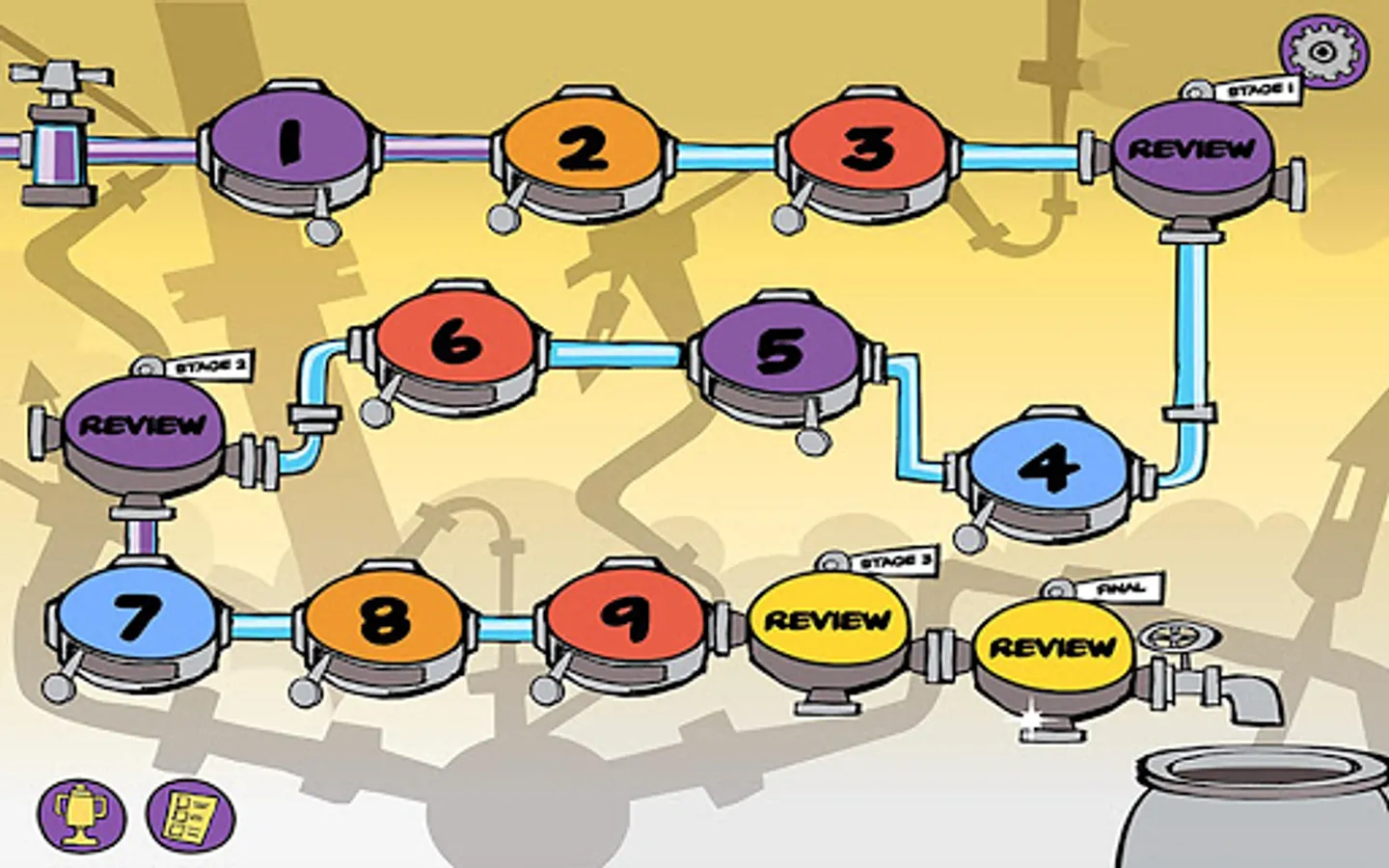 • Challenges players by increasing the language level, game speed and points available as they progress through each level and stage
