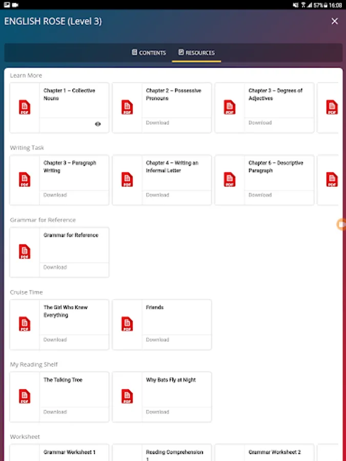 The App gives access to all the animations, videos and other interactive activities that are provided as part of the digital learning resources in the eReader. The desired content can be easily downloaded and used offline as and when needed.