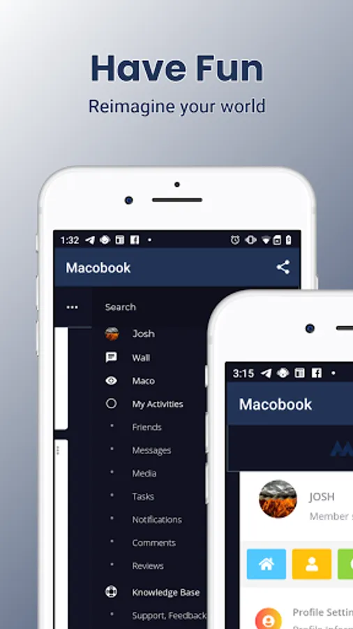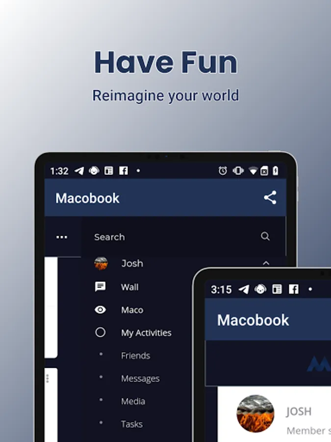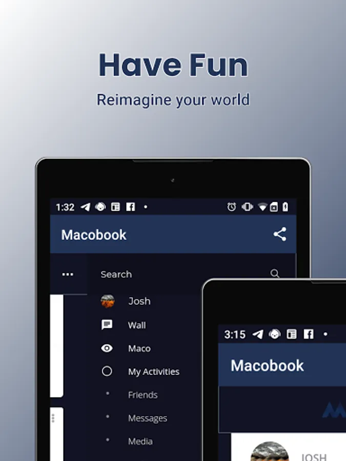 The most important desktop features of Macobook are also available on the app, such as writing on timelines, liking photos, browsing for people, and editing your profile and groups.