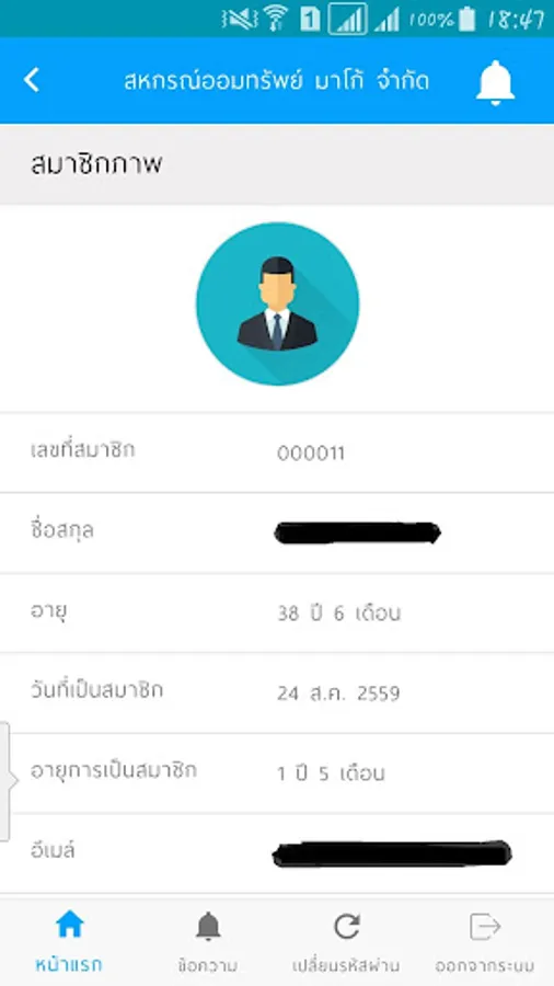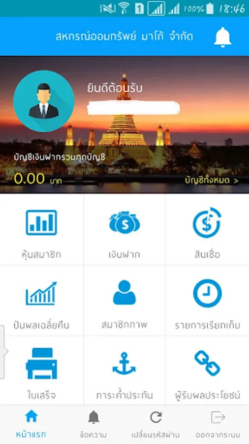 Application for members Allowing members to check the balance of deposits, loans, stocks, print receipts, etc.