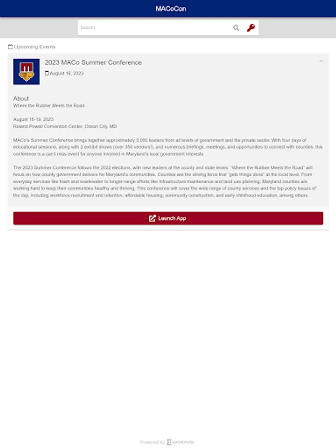 MACo's conferences are "must attend" events for anyone interested in Maryland's county governments. Use the app to view the full agenda, set a personal schedule, browse exhibitors and sponsors, and view exhibit hall and venue maps.