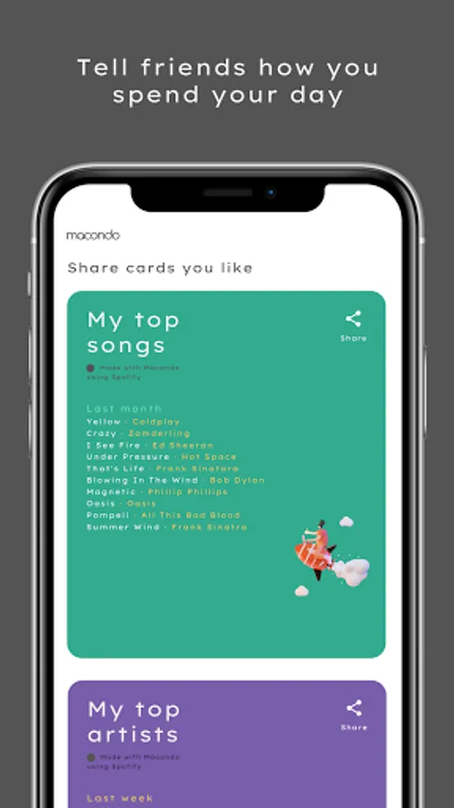 On Macondo, you can share interesting insights about your music listening history.