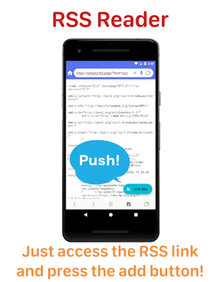 Open your own or your friend's site or blog and access the RSS link. And you can easily get the article information by tapping the RSS add button.