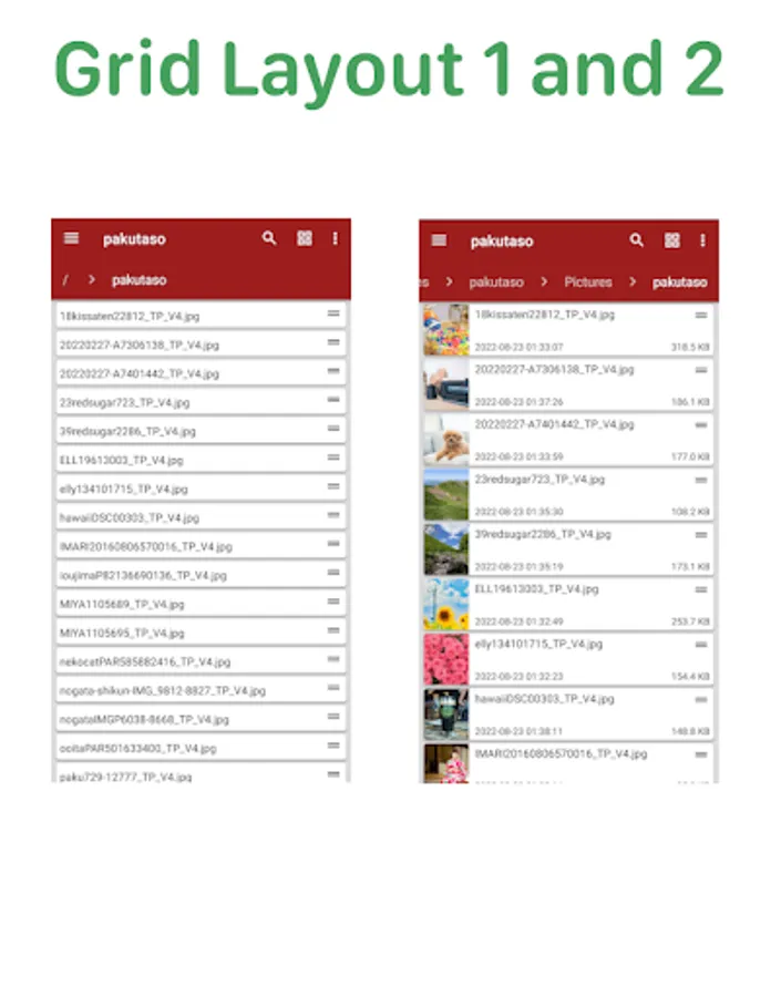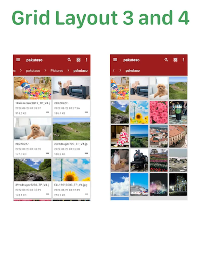 This app has 5 grid patterns for easy file management.