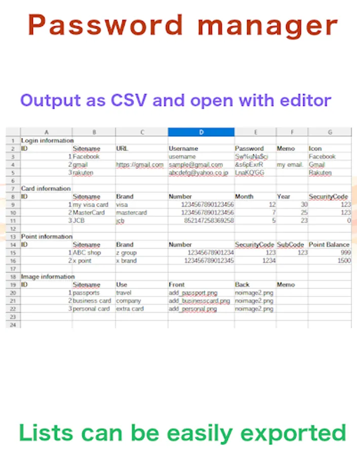 Save frequently used web shop site login information, credit card information, etc. locally (app-specific area).