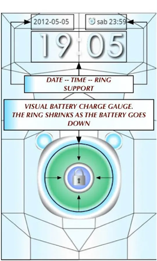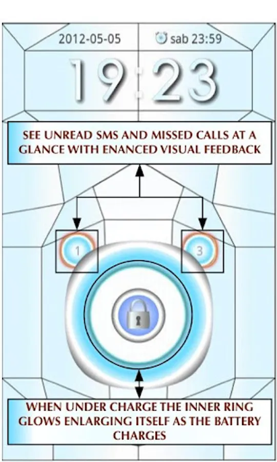 Energy and power are managed to give you visual feed-back of the most important parameters such as battery charge, unread sms and missed calls.