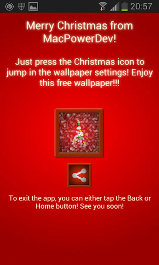 Installation has never been so easy: just download and open the app, tap on the Christmas Button and you'll be directly sent to the wallpaper set screen.