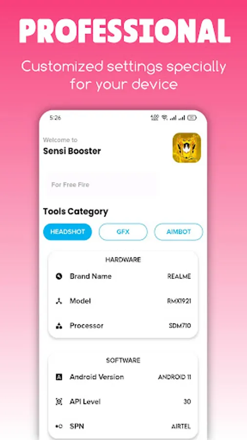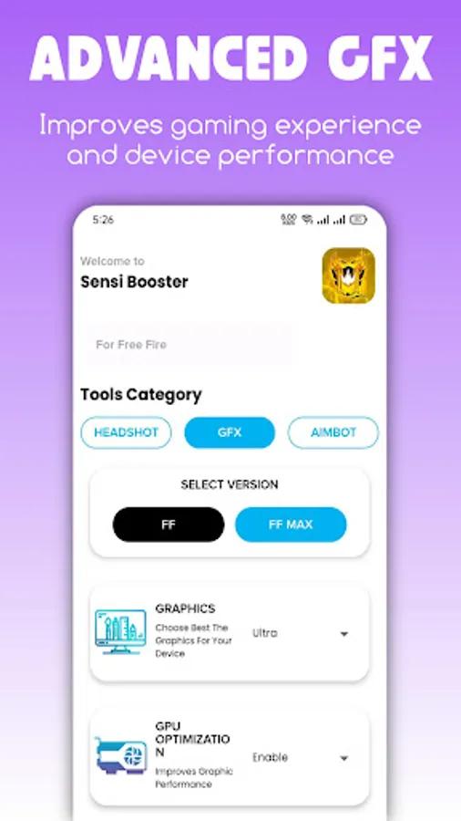 This app allows you entertain yourself with one tap shots. It have gfx tool guide and sensitivity settings. By using this custom HUD and sensi you can easily improve your skills and become a pro one tap player.