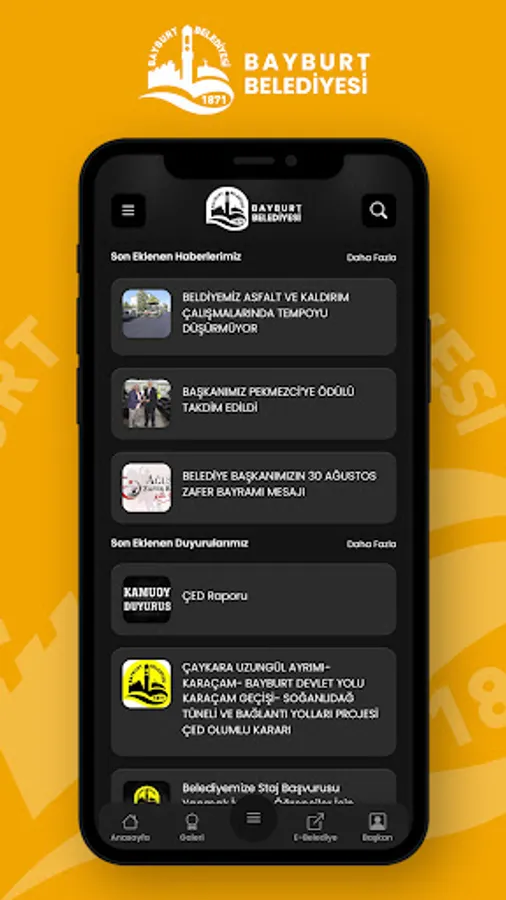 It is designed in such a way that you can quickly get news, announcements and other information about Bayburt Municipality.