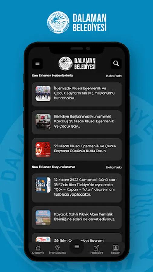 It is designed in such a way that you can quickly get news, announcements and other information about Dalaman Municipality.